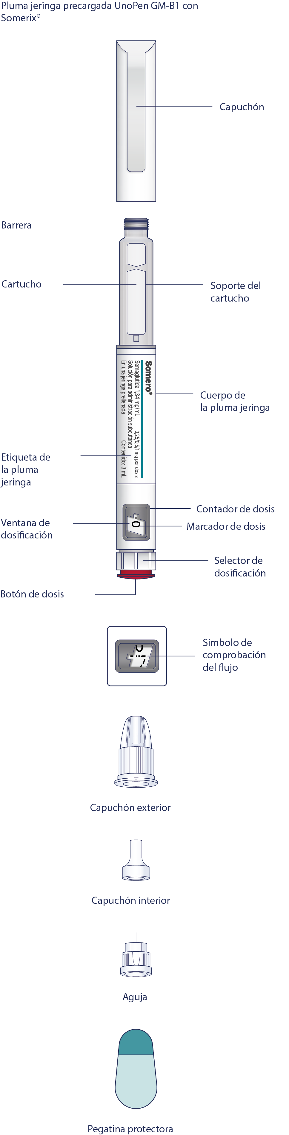 Asegúrese de que la pluma contenga Somero 0.25 mg/dosis, 0.5 mg/dosis, 1 mg/dosis. Esto es especialmente importante si utiliza más de un tipo de medicamento inyectable.
