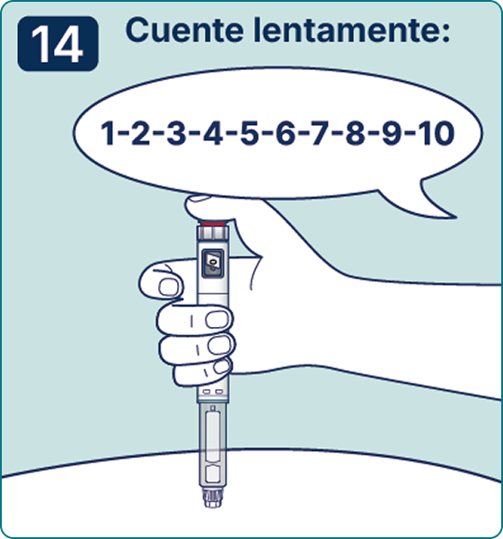 14. Mantenga la aguja bajo la piel hasta que el contador de dosis vuelva a “0” y cuente lentamente hasta 6
