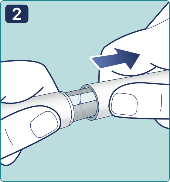 2. Sostenga la pluma jeringa con la mano y retire el capuchón de la pluma con la otra mano